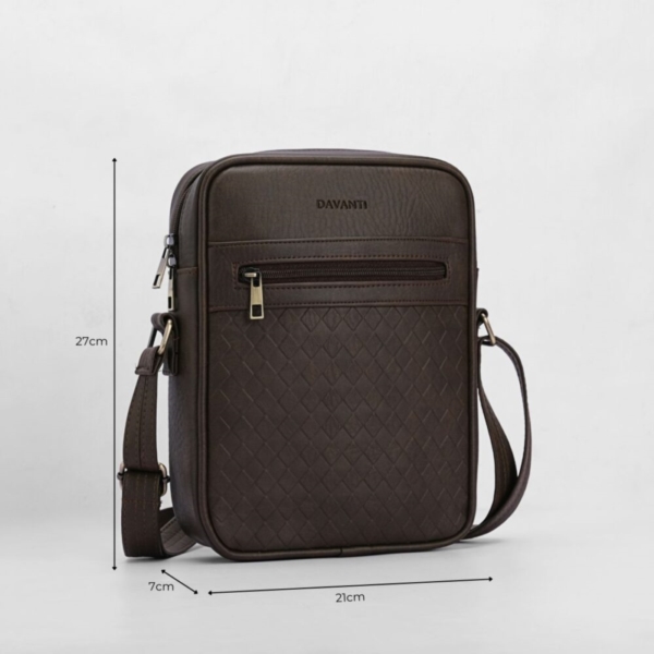 Kiểu dáng túi đeo chéo da ZGD277 chinh phục mọi ánh nhìn với họa tiết caro dập nổi tinh tế, tạo nên tổng thể hài hòa và sang trọng. Túi mang đến vẻ đẹp và sự hòa quyện hoàn hảo giữa phong cách nam tính lịch lãm và nét đẹp tối giản tinh tế. Sở hữu kích thước hoàn hảo, đủ rộng rãi để bạn mang theo những vật dụng cần thiết như điện thoại, ví tiền, chìa khóa,… Bên cạnh đó, ngăn phụ nhỏ được trang bị tiện lợi để bạn cất giữ những vật dụng quan trọng một cách an toàn.
